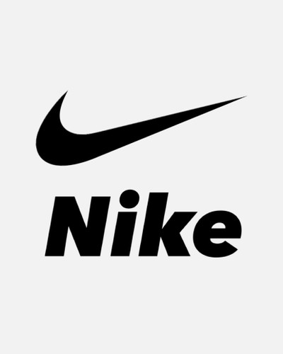 3- : لوگوی بزرگ نایک (Swoosh) به رنگ سفید روی زمینه مشکی